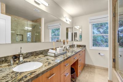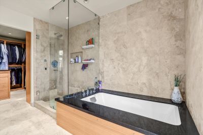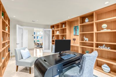 Designed with superior craftsmanship throughout, the residence features exquisite rift-sawn white oak custom cabinetry and architectural wall accents.