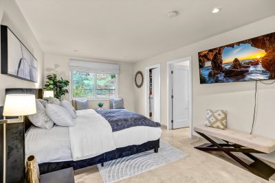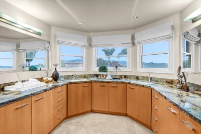 5 bedrooms upstairs, plus dedicated home office upstairs, and a luxurious primary suite with panoramic views.