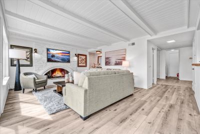 Boasting AN ENORMOUS BRIGHT FAMILY ROOM boasting fireplace, built-in cabinets, NEW LAMINATE WOOD FLOORS and sliding door opening to the most AMAZING EXPANSIVE BACKYARD.