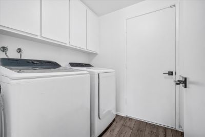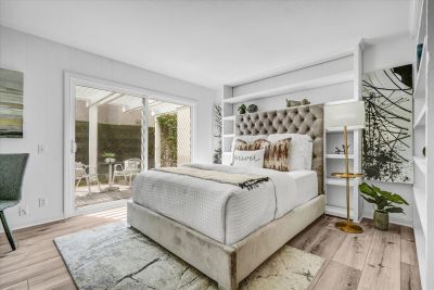 Experience modern living, showcasing MULTI-USE DOWNSTAIRS ROOM with built-in shelves ideal as a BEDROOM OR OFFICE WITH SLIDING DOOR OPENING TO THE BEAUTIFUL BACKYARD.