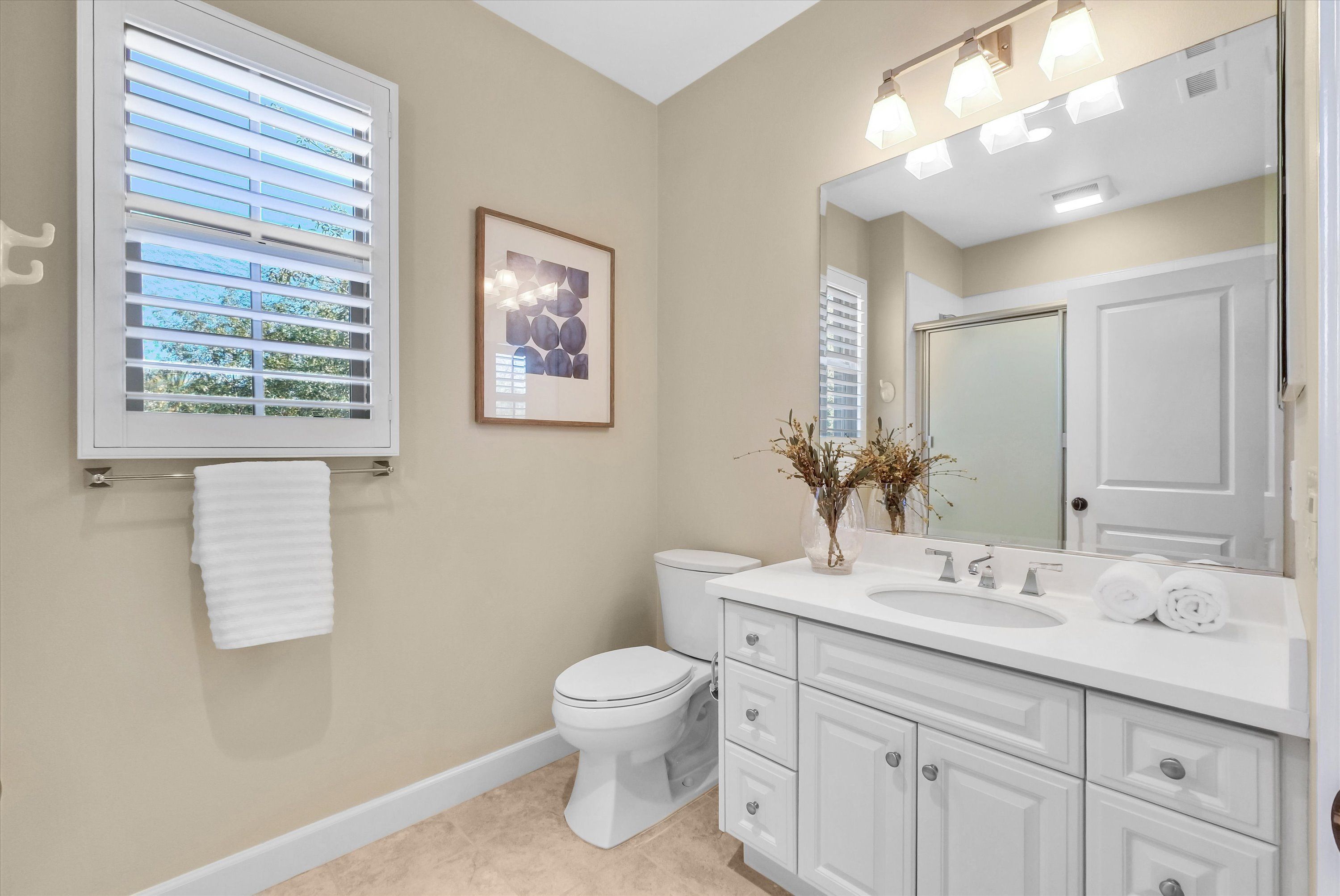 Additional highlights include FULLY PAID TESLA SOLAR SYSTEM AND POWERWALL (BACK-UP BATTERY), whole house fan, WHOLE HOUSE SOFT WATER FILTRATION, wood shutters throughout, ceiling fans, upstairs laundry room with built-in cabinets and ample linen storage PLUS WHOLE HOUSE VACUUM.