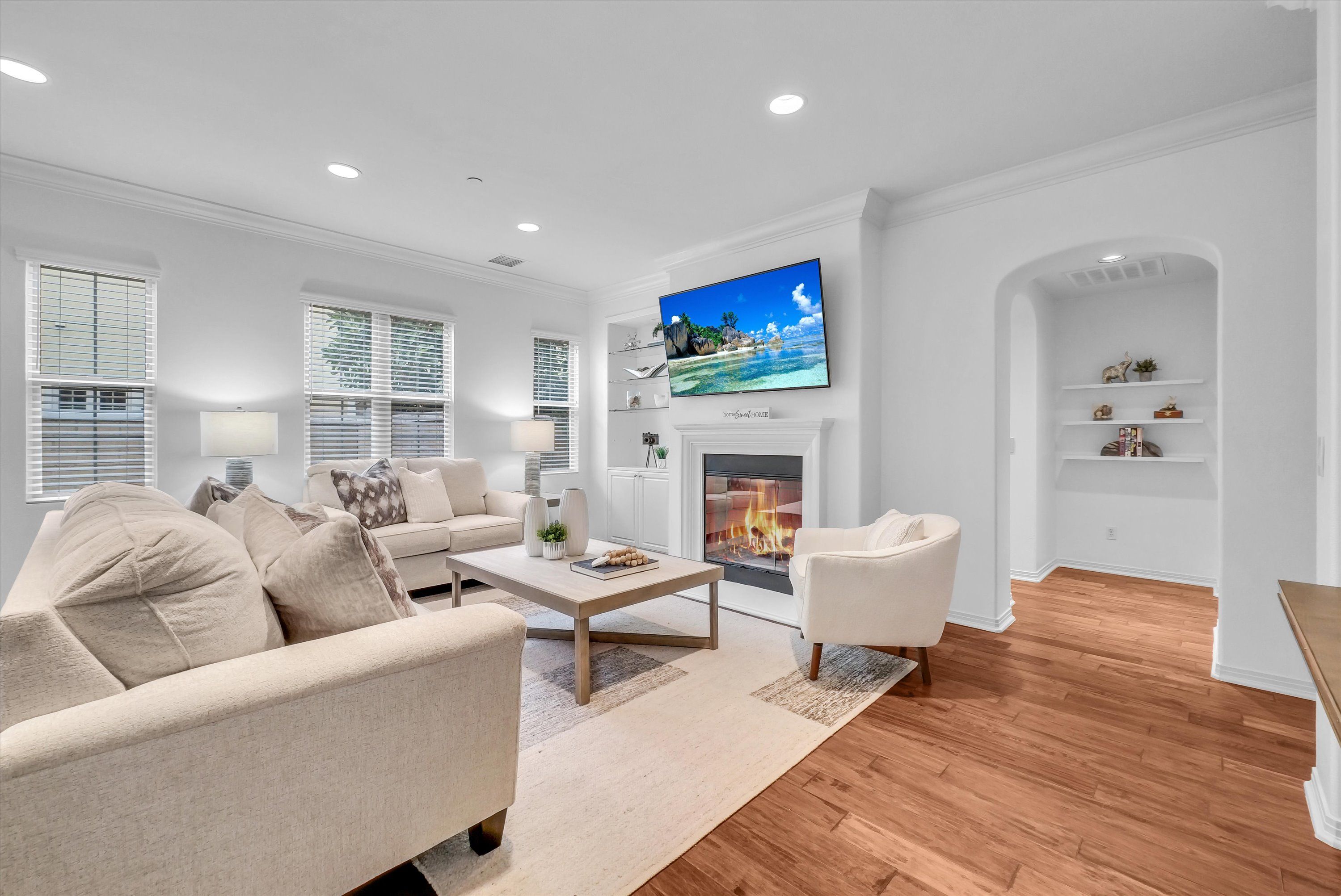 Sun-Filled Great Room w/ Fresh Paint, Hardwood Floors & Built-In Cabinet